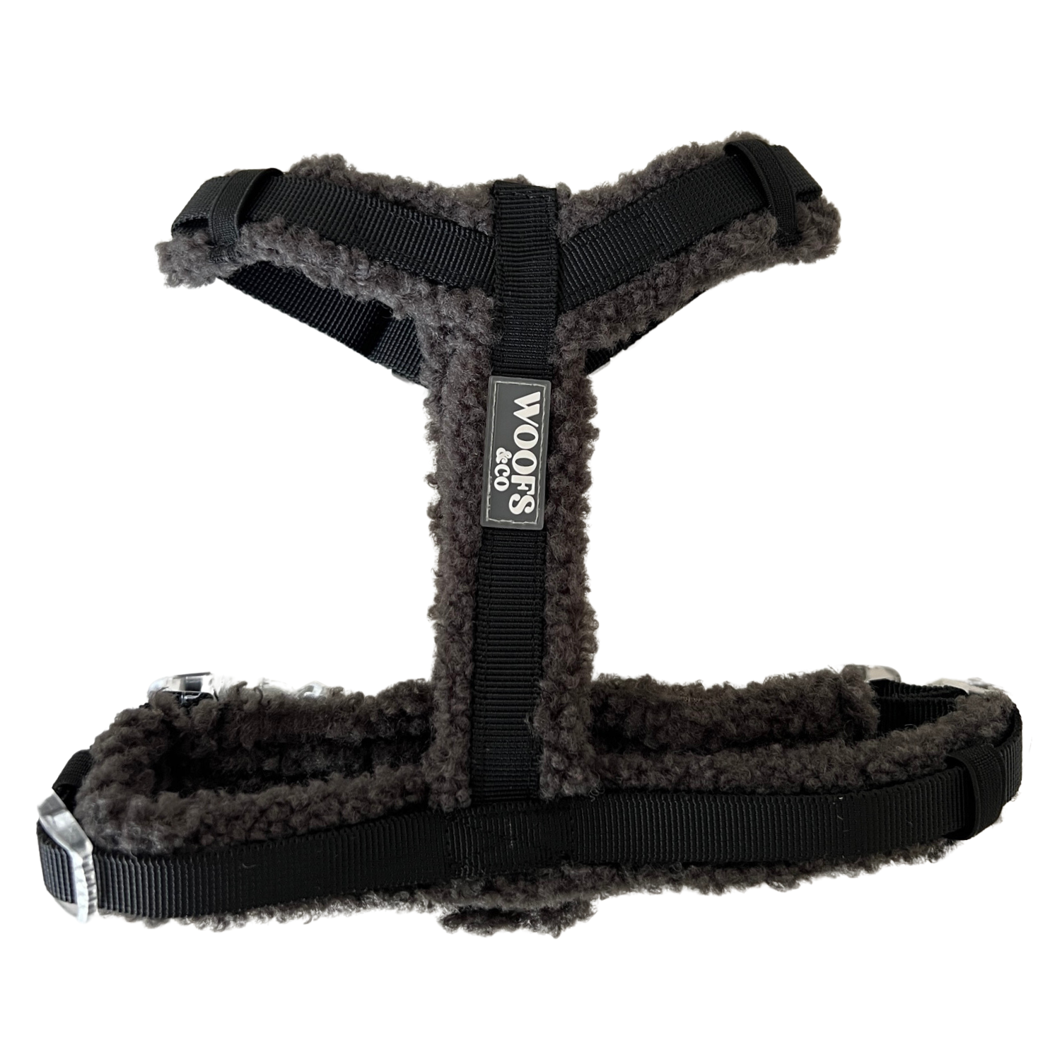 Introducing our Teddy Collection in the color Charcoal Grey, where style meets comfort. Our teddy harnesses feature trendy tones and chic transparent hardware with ultra soft Teddy material, perfect for adventures with your fashionable furry friend.