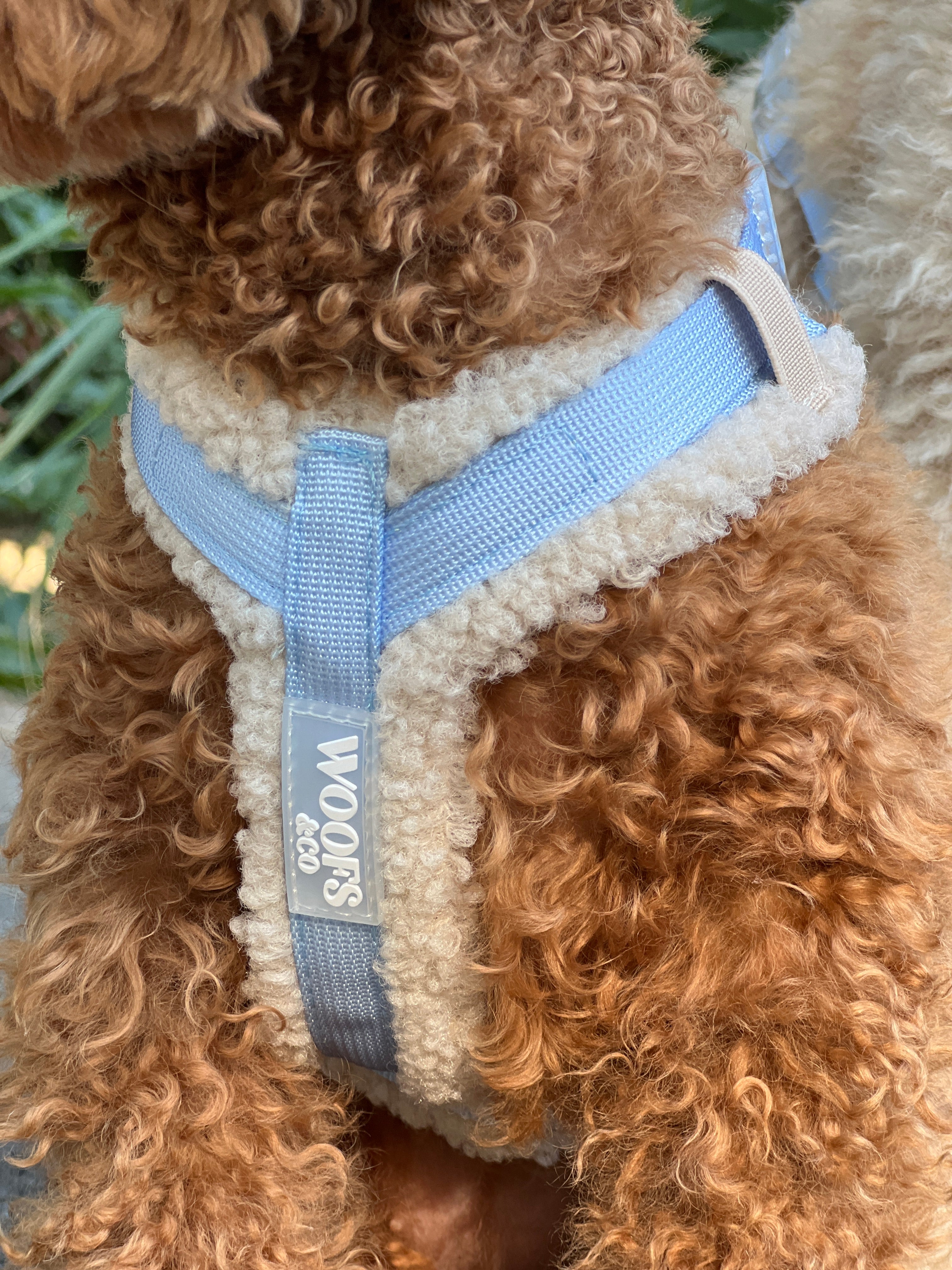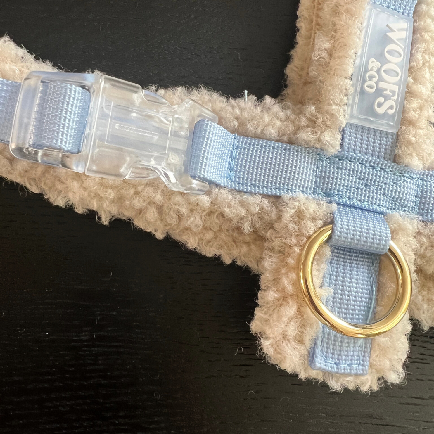 Introducing our Teddy Collection in the color Light Blue, where style meets comfort. Our teddy harnesses feature trendy tones and chic transparent hardware with ultra soft Teddy material, perfect for adventures with your fashionable furry friend.